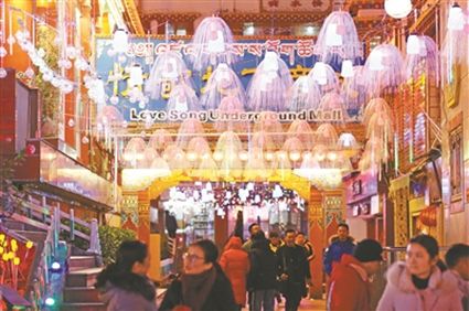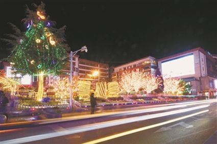 火樹銀花不夜天,流光溢彩呈繽紛?!敖衲甑囊咕罢嫫涟?!”旺姆阿姨和登增叔叔晚飯后帶著孫女來到將軍橋散步,在自己的家鄉(xiāng)欣賞到如此美妙的景色,登增叔叔忍不住夸贊。此時,將軍橋道路兩旁的綠化帶在彩燈的映襯下輪廓畢現(xiàn),與玻璃棧道上的光影交相輝映,城市美景盡在其中。