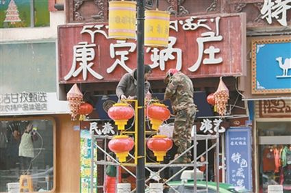 春節(jié)的腳步越來越近,最近幾天,康定市主要街道、河畔、公園、廣場處處懸掛起燈籠、燈帶等裝飾品,充滿濃濃的節(jié)日氣息。