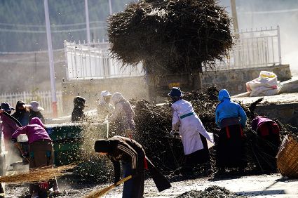 我想,擁有了清新質(zhì)樸的鄉(xiāng)野日子,就可以靜下心來。而事實(shí)上還是無法安下心來,一面想著山林的神秘,一面想著城市的熱鬧。寂寞無聲地穿過巷道,那個(gè)向陰的小二樓一如既往地昏暗。拉開麻布的窗簾,大多時(shí)候我會看見走在巷道里的老老少少、男男女女,他們背著柴禾,滿帶笑容,相互致意。他們的日子似乎充滿了無盡的樂趣,也充滿了幸福和陽光。上午十點(diǎn)的時(shí)候,陽光會滑過窗臺,轉(zhuǎn)瞬即逝,但陽光的確向小二樓袒露了它的無能為力。另一張桌子擺放著廚具,廚具上每天都會有新的灰塵堆積,盡管如此,它們依然發(fā)出青稞的馥郁之氣。