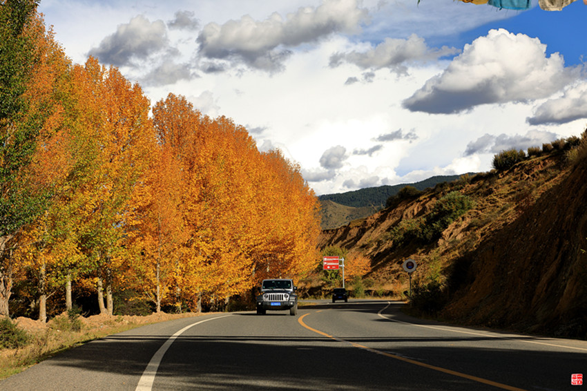 沿著國(guó)道318、317川藏公路,雪山、湖泊,搭配靈動(dòng)熱烈的彩林、黑色的牦牛、金黃的草原……一路將勝景看到極致。