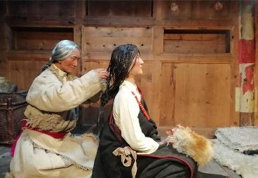 歷時(shí)一個(gè)多月,擠奶、喝酥油茶、茶馬古道、商人打秤、康巴商人袖內(nèi)交易、客人喝酥油茶場(chǎng)景、弦子、主人房、藏式廚房、婚俗、倉(cāng)庫(kù)、羊毛編織、藏文書(shū)法、理塘傳統(tǒng)建筑等蠟像雕塑,將康巴人過(guò)去的生活還原得栩栩如生。