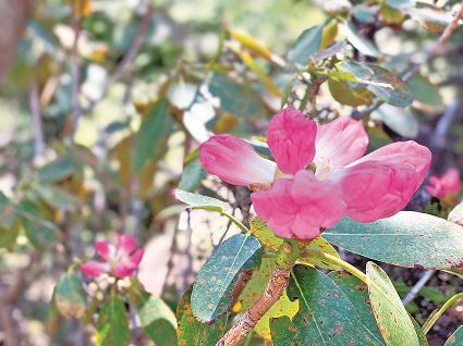 在這里,滿樹粉紅的花朵,在嫩葉的襯托下美得不勝收,每一個(gè)斜倚在枝頭的花骨朵,都可獨(dú)立入畫,每一棵怒放的花叢,一團(tuán)團(tuán)一簇簇一山山,朵朵花兒,迎風(fēng)玉立,花瓣兒密密匝匝,蕊靠著蕊,瓣貼著瓣,相互依偎競(jìng)相輝映,粉的、紅的……各色不同的杜鵑花兒點(diǎn)綴山間,在青山相映、綠樹相伴下,不負(fù)春風(fēng),不負(fù)天地,不負(fù)日月,不負(fù)流年……你來(lái),她們臨風(fēng)綻放歡迎你,嗅著大自然的氣息,穿梭在花海叢林間,春天的色彩不斷刷新著目光,一路花語(yǔ)喃喃,一路欲語(yǔ)還休,正可謂“何須名苑看春風(fēng),一路山花不負(fù)儂”。還沒看過(guò)今年杜鵑花的小伙伴,快來(lái)打卡喲,邂逅一株花開的樹,真心別錯(cuò)過(guò)這場(chǎng)“花海盛宴”!賴卓 徐宏燕 文/圖