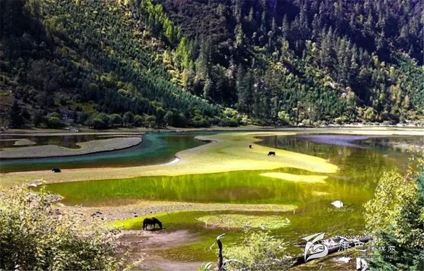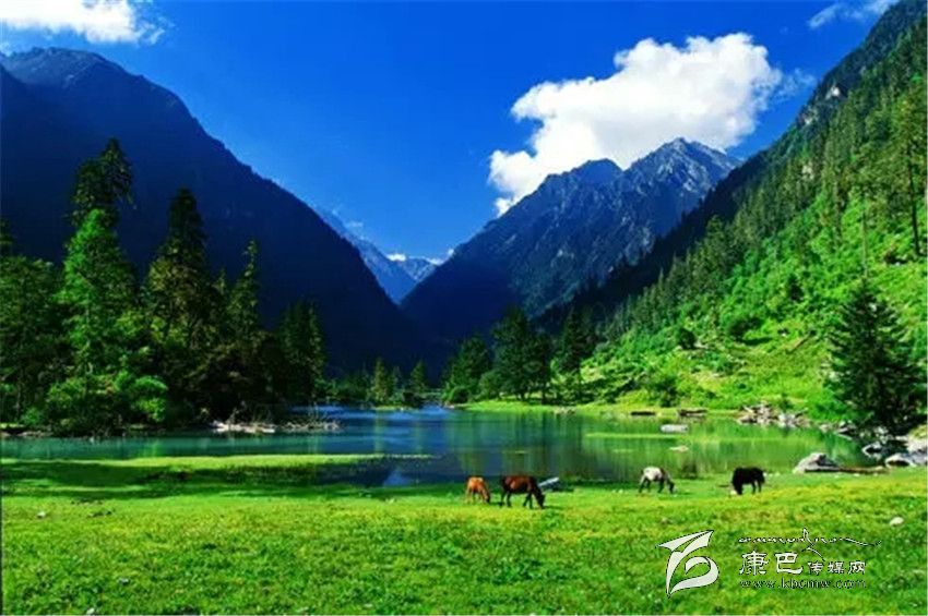 藍(lán)寶石般的高原湖泊、銀鏈般的溪流迂回盤旋,時常有馬兒在湖邊漫步。