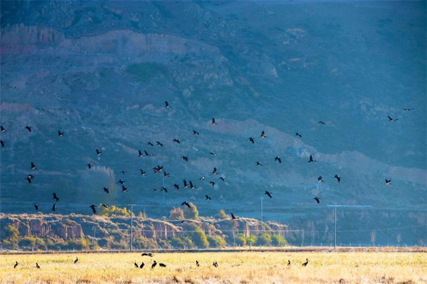 自2013年在鮮水河濕地公園固依壩子發(fā)現(xiàn)了大批黑鸛后,每年10月都有大批的黑鸛在鮮水河濕地公園內(nèi)遷徙和停歇,這在全國(guó)尚不多見(jiàn),足以證明濕地公園生態(tài)環(huán)境的平衡和和諧,同時(shí)也印證了鮮水河濕地公園已經(jīng)成為黑鸛種群的重要棲息地,具有重要的保護(hù)意義。