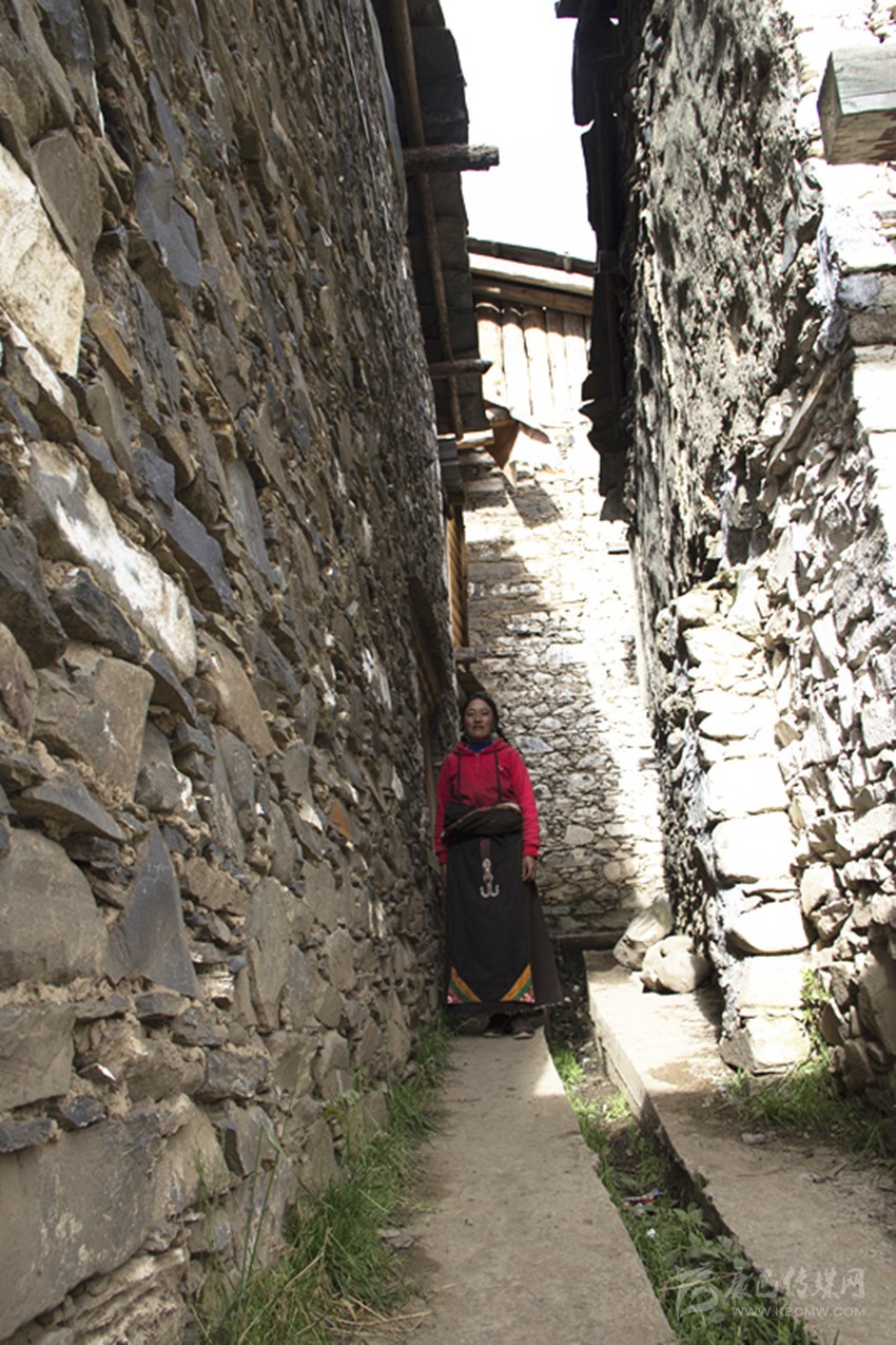 莫斯卡的房子都用石頭砌成,并在外墻噴成灰白的顏色,屋外一條斜斜的樓梯通往屋內(nèi),樓梯或屋后整齊的堆滿柴禾,屋頂都用青石板蓋成。整個村莊緊緊圍著金龍寺向外延擴(kuò)展,形成一個約20-30畝的長方形村落,并砌了圍城將村莊圍起來。圍墻留有一個前門和兩個中門,供村民們進(jìn)出。村民們與自然和諧相處,過著“與世隔絕”的生活。