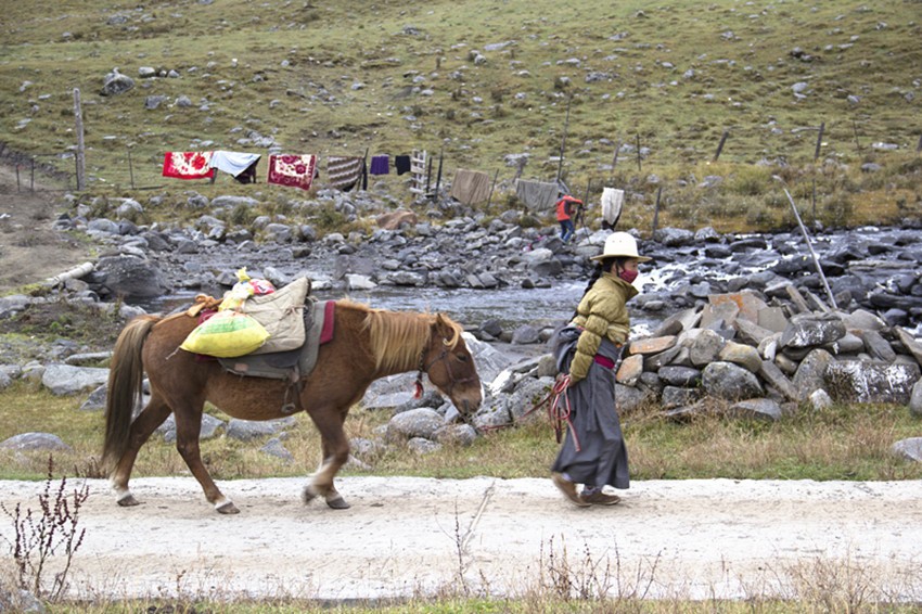 莫斯卡的女人或在寺廟點(diǎn)酥油燈,或帶孩子,或牽馬牧草,或在溪邊淘衣,或出門打水……她們的勤勞和樸實滋養(yǎng)著莫斯卡,滋養(yǎng)著莫斯卡的生命。她們用黑、紅、綠那樣跳躍的顏色搭配出獨(dú)具風(fēng)格的服飾,背著你遠(yuǎn)去,又迎著你走來,她們美麗的背影裝扮了寂靜的莫斯卡小巷。
