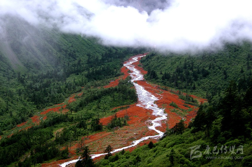 成千上百顆紅色石頭,堆積在河谷中、溪流里、山野旁,如果說海螺溝是一首歌,那紅石就是音符,二者共同譜成了一曲絕美之歌。而那一抹紅色,與山間的溪流、谷中聳立的樹杉、青山綠水交相輝映,構(gòu)成了一幅大美于世的秀麗風景畫卷。
