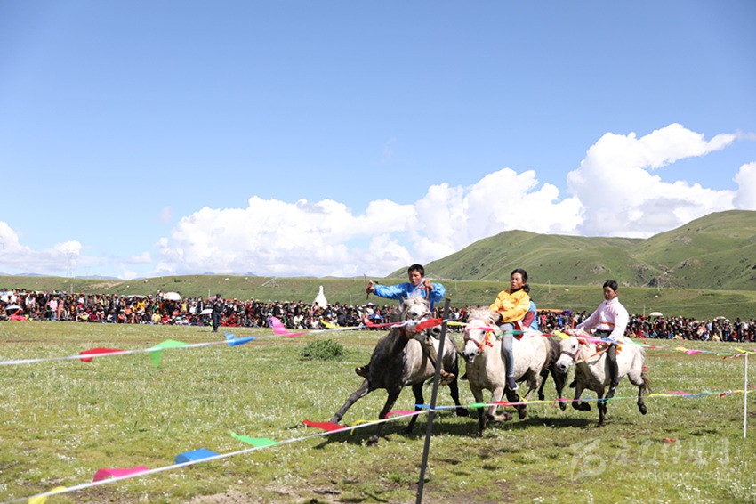 馬尼干戈鎮(zhèn)全境橫貫國道317線,是德格典型的純牧業(yè)鄉(xiāng)鎮(zhèn),轄區(qū)內(nèi)地廣人稀,草場(chǎng)豐富,有著十分豐富的牧俗文化,“西天瑤池”玉隆拉措也坐落于此。每年的7月底8月初舉行的賽馬節(jié),是當(dāng)?shù)刈顬槁≈氐膫鹘y(tǒng)民族節(jié)日之一。在雪域高原上綠草如茵、各類鮮花爭(zhēng)相斗艷的最美時(shí)節(jié),牧民們會(huì)身著華麗的藏裝,自發(fā)聚集在一片開闊的草場(chǎng)上,搭帳篷、唱歌跳舞,并開展賽馬、賽牦牛、賽跑和馬技表演、趣味游戲等民俗民間活動(dòng),增進(jìn)相互之間的感情,促進(jìn)鄰里和睦。