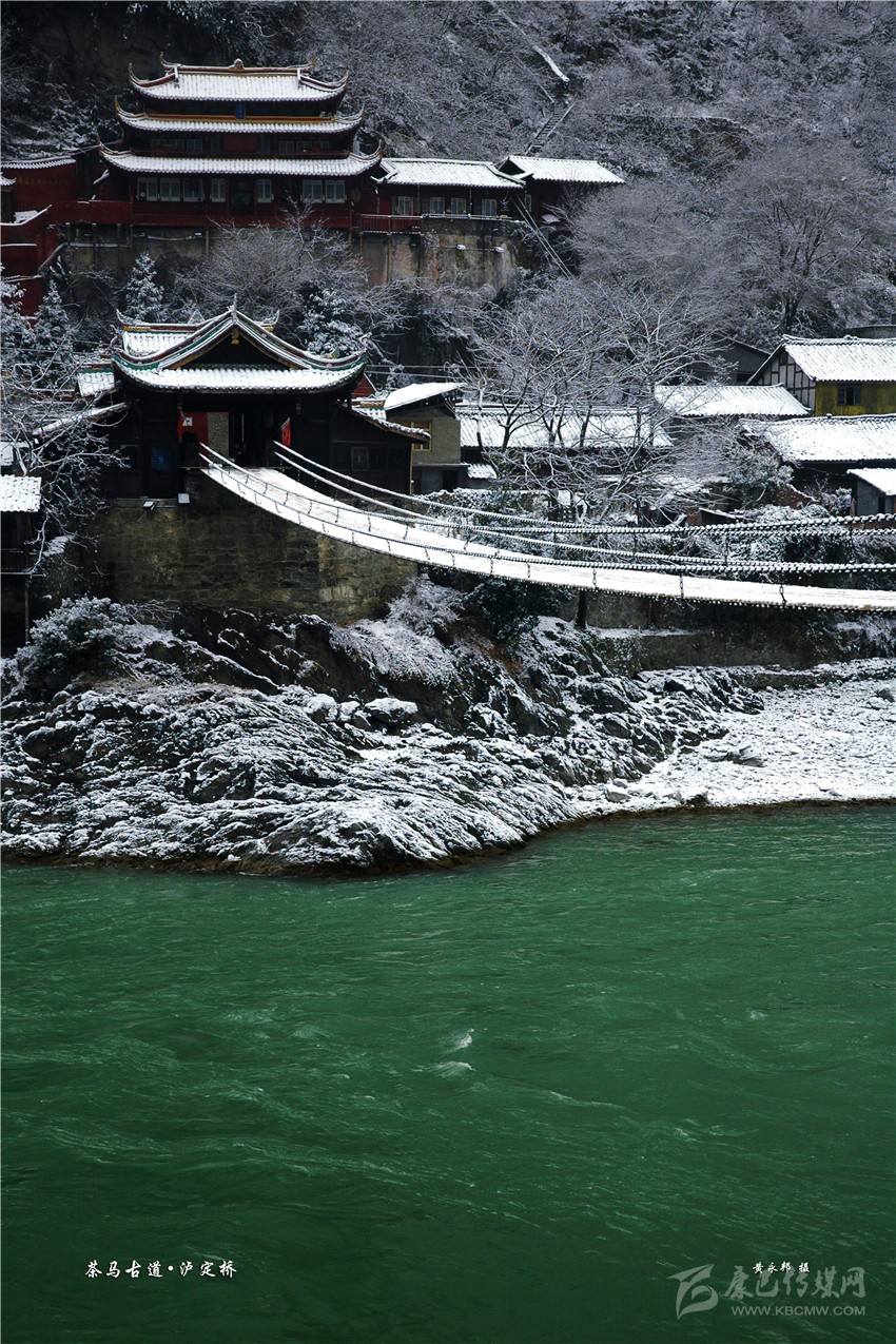 瀘定橋又稱為鐵索橋,是中國古代橋梁建筑的杰作,建成于康熙45年(1706年)??滴跤P題寫“瀘定橋”,并立御碑于橋頭,橋長103.67米,寬3米,十三根鐵索鏈固定在兩岸橋臺(tái)落井里,猶如十三條巨蟒橫空出世,經(jīng)歷歲月風(fēng)雨,穿越歷史煙云,無聲地訴說著往事。站在瀘定橋上,洶涌的大渡河水從腳下奔騰而過,橋體不規(guī)則晃動(dòng),蕩秋千似的,“大渡橋橫鐵索寒”的“寒”字,不到現(xiàn)場,根本無法體會(huì)其真正含義,飛奪瀘定橋,譜寫了一曲長征途中“驚、險(xiǎn)、奇、絕”的戰(zhàn)斗奇跡,也使瀘定橋成為中國革命重要的歷史紀(jì)念地之一。