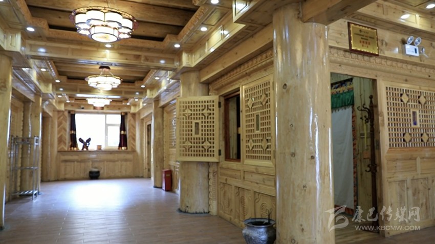 這幢民“居”之所以是“宿”,是因?yàn)樗牡讓颖辉O(shè)計(jì)建造成為了11間客房,安裝現(xiàn)代化設(shè)施后用于旅游接待。而二樓則為臥室、經(jīng)堂、客廳、貯藏室、廚房、走廊和陽(yáng)臺(tái)等,在建造中最難的一道工序便是室內(nèi)裝修的雕刻和繪畫,此二門藝術(shù)可謂“崩科”之精華所在,極具康巴文化特色。