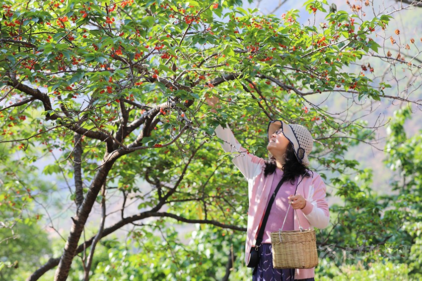 雖然視聽盛宴落下帷幕,但是舌尖狂歡季才剛剛開始。文藝匯演結束后,大家信步漫游在杵坭村的田間小道上、櫻桃果園中,聽果農(nóng)講述櫻桃知識,體驗采摘樂趣、品嘗紅果甘味,盡情地享受著這歡樂的周末時光。