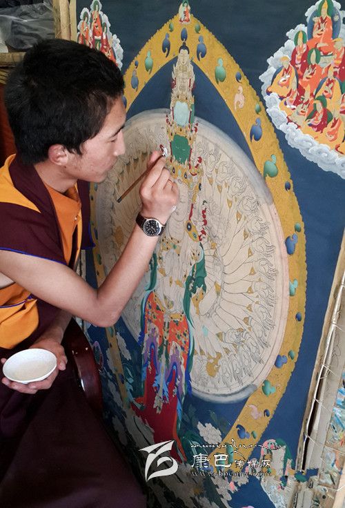 由于歷史原因,郎卡杰唐卡繪畫藝術(shù)曾一度面臨失傳的絕境,2007年,當?shù)卣闪⒘藸t霍縣唐卡繪畫藝術(shù)協(xié)會,進行唐卡繪畫人才培養(yǎng)和市場化運作。目前,爐霍縣郎卡杰唐卡藝術(shù)協(xié)會有老師7名,畫師180名,并進行繪畫人才培養(yǎng)。近年來,郎卡杰唐卡銷量也連年增長,遠銷國內(nèi)各大城市,以及海外英國、日本等地,使這項藏民族民間手工藝得到很好的發(fā)揚和傳承,形成了規(guī)?;彤a(chǎn)業(yè)化。