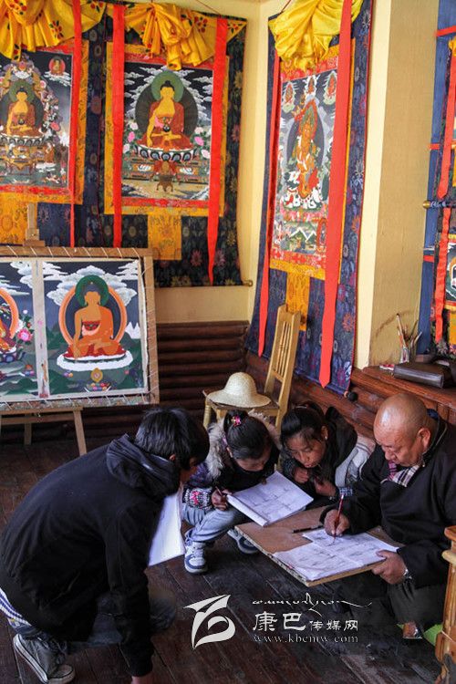 11月11日,老師白馬澤仁在教幾個孩子唐卡繪畫基本功。