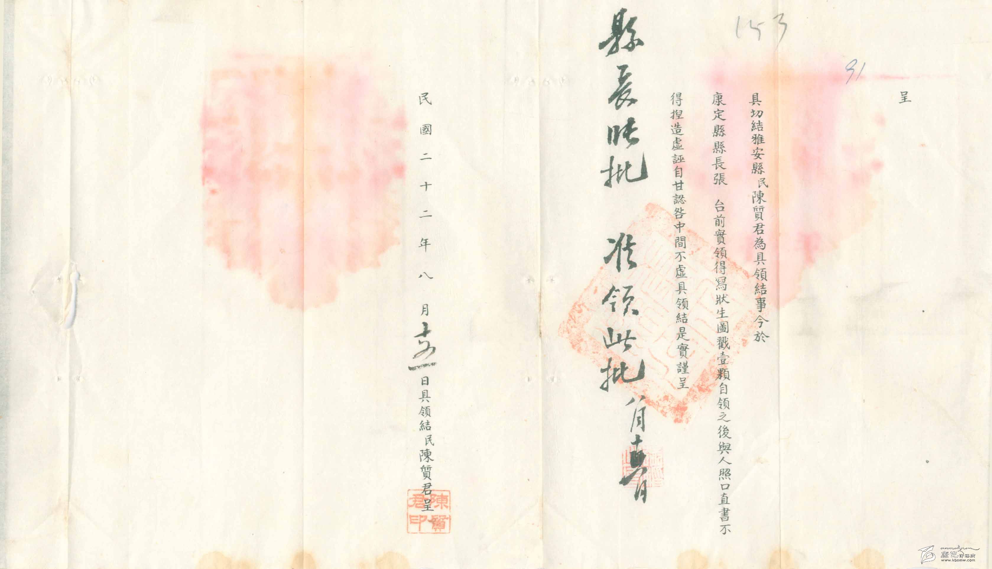8月15日,陳質(zhì)君領(lǐng)到了“戳記”(應(yīng)是一枚印章),又向縣政府寫了“具結(jié)”(保證書)。對于他的考試估計到此結(jié)束,此人也就開始了他的“寫狀”生活。