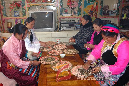 巴塘人一年當(dāng)中有很多重要的節(jié)日,而最重要的莫過(guò)于過(guò)春節(jié)。隨著農(nóng)歷新年的來(lái)臨,巴塘人過(guò)春節(jié)的氛圍也越來(lái)越濃烈了。掃塵、貼春聯(lián)、殺年豬、罐血腸、樹(shù)經(jīng)幡、獻(xiàn)“切瑪” 、曬牛肉干、做長(zhǎng)面、炸“花茹” 、 釀青稞酒等等,人們臉上綻放出春天的笑顏,喜逐顏開(kāi)迎候新春佳節(jié)的到來(lái)。而在眾多的風(fēng)味飲食中,炸“花茹” 、 吃長(zhǎng)面(當(dāng)?shù)厝朔Q(chēng)之為“金絲面”)是巴塘人春節(jié)時(shí)家筵中必不可缺的美食佳肴。