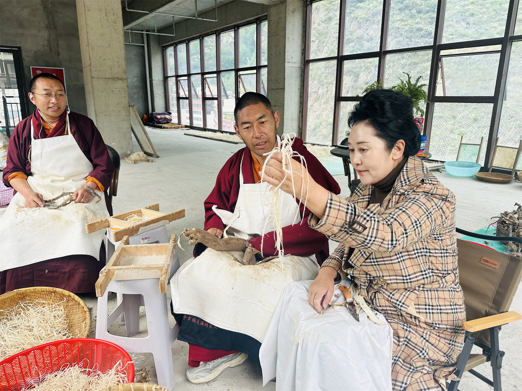 “充巴姐教我做藏紙,每個月還給我發(fā)3000元的基本工資,要是誰家有困難,她也總是解囊相助?!弊鳛榈赂癫丶堉谱鞯馁Y深學生,翁姆直言藏紙技藝讓自己收獲頗豐。