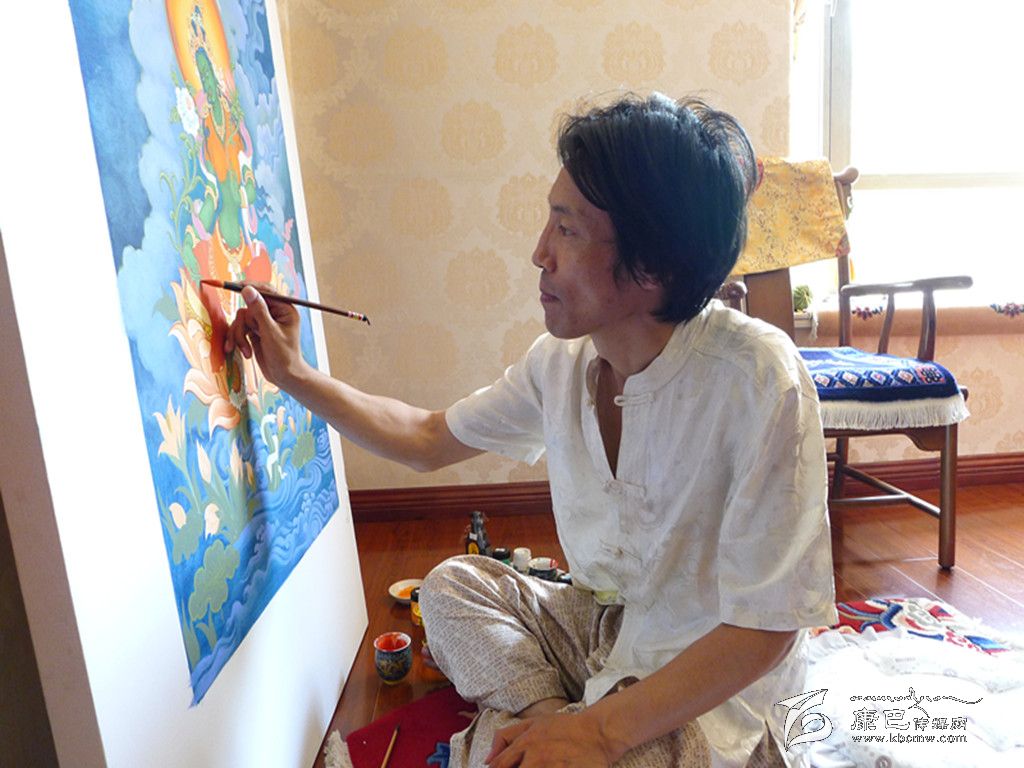 在接受采訪的時候,拉孟請記者諒解,他實在是沒有辦法。在取得諒解和同意后,拉孟便在唐卡的繪畫世界里時不時探出頭來,回答記者提出的問題。