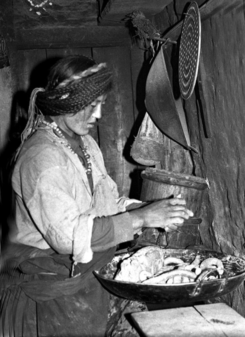 再就是有腌制酸菜的好手—魚(yú)通婦女。魚(yú)通女,多是“大腳丫頭”,高大壯實(shí),堪稱“女漢子”,且善良賢淑、憨厚能干,里里外外拿得起放得下,看不到一點(diǎn)“窈窕淑女”的影子。所以早年康定地方流行這樣的“禪話”:“大風(fēng)塆的風(fēng),瓦斯溝的蔥,要討婆娘到魚(yú)通”。高高山上的魚(yú)通女,“任你溜溜的求喲!”。
