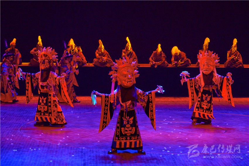 《亞丁?三怙主》歌舞劇不僅從藏族人民日常生產生活中提煉出很多舞蹈文化元素,還對宗教樂舞進行了合理的借鑒。舞劇中用了道孚嘛呢鍋莊、德格卓且、巴塘弦子、爐霍鍋莊、石渠真達鍋莊、丹巴鍋莊、稻城鍋莊等民間舞蹈等元素,加以深化再創(chuàng)作,把原有的民間舞蹈的步伐、舞姿進行夸張性的舞臺處理,并配以適當的隊形,以更加適應劇場舞臺的表演;大膽創(chuàng)新引入寺廟樂舞,寺廟樂舞本是藏傳佛教寺廟在宗教節(jié)日表演的祈福性舞蹈,舞劇編創(chuàng)人員合理借用寺廟樂舞的音樂、步伐、面具等,用以表現(xiàn)藏族人民與自然抗爭,不懼不屈的精神面貌;用泥土筑墻本是藏族人民建造房屋時的一種建筑技藝,在民間演繹成為地方舞種,舞劇編創(chuàng)人員將筑墻的基本步伐和動作加以提煉,編創(chuàng)了一段約兩分鐘的打舞,用夸張的步伐和動作,配以鏗鏘有力的勞動號子,將豪氣灑脫的打墻舞氣氛推向高潮,以表達藏族人民的勤勞、勇敢與豪邁。州委黨校高級講師陶勇說:“《亞丁?三怙主》歌舞劇旨在講解香格里拉之魂,詮釋亞丁三怙主的本意,闡釋三座神山文化包含佛陀的核心教義。亞丁三怙主即仙乃日(觀世音菩薩)、央邁勇(文殊菩薩)、夏諾多吉(金剛手菩薩),它們分別象征慈悲、智慧、力量。這部歌舞劇是解讀藏民族精神文化、弘揚藏民族真善美勇、傳遞康巴文化真諦的民族歌舞劇。歌舞劇通過《序》、《慈明》、《慧明》、《力明》、《尾聲》五個篇章,充分展示藏族傳統(tǒng)文化中熱情、好客、善良、慈悲、勇敢、追求和諧的優(yōu)秀價值觀,將民族文化融入到社會主義核心價值觀,展現(xiàn)了當代人民群眾的幸福生活。同時對游客來講不僅豐富了亞丁文化,填補了游人僅僅觀賞雪山不知文化內涵的短板,為以后推介甘孜州做了很好的示范?!?/span>
