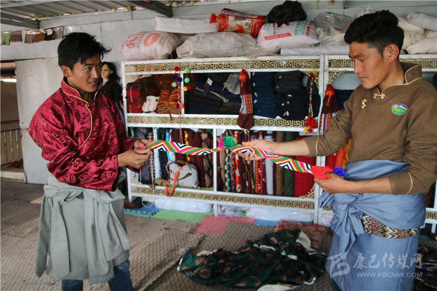 安孜鄉(xiāng)作為白玉縣海拔較高的鄉(xiāng)鎮(zhèn)之一,夏天是十分短暫的,連日來的晴好天氣,也透著絲絲寒氣。牧民阿剛想要量身定做一套過冬的藏裝,9月13日,他來到白玉縣阿察鎮(zhèn),一家民族服飾商貿(mào)公司吸引了他的目光。“我們這里的服裝面料是本地羊毛和從浙江進(jìn)的上等面料,做工考究,很多工序是純手工制作,服裝樣式你可以根據(jù)你的喜好指定,我們包你滿意。”店員仁真熱情地介紹。聽了仁真的介紹,阿剛用手捻了一下服裝用料的質(zhì)地,看到印有“祥陽措”商標(biāo)的精美包裝袋,商店里擺放的五彩斑斕、高端大氣的藏式男女服裝,他有些動(dòng)心了?!吧a(chǎn)這些服裝的都是我們納塔鄉(xiāng)的牧民,你可以考察我們的服裝用料、生產(chǎn)流程,再作打算?!比收鏌崆檠笠绲亟榻B說。