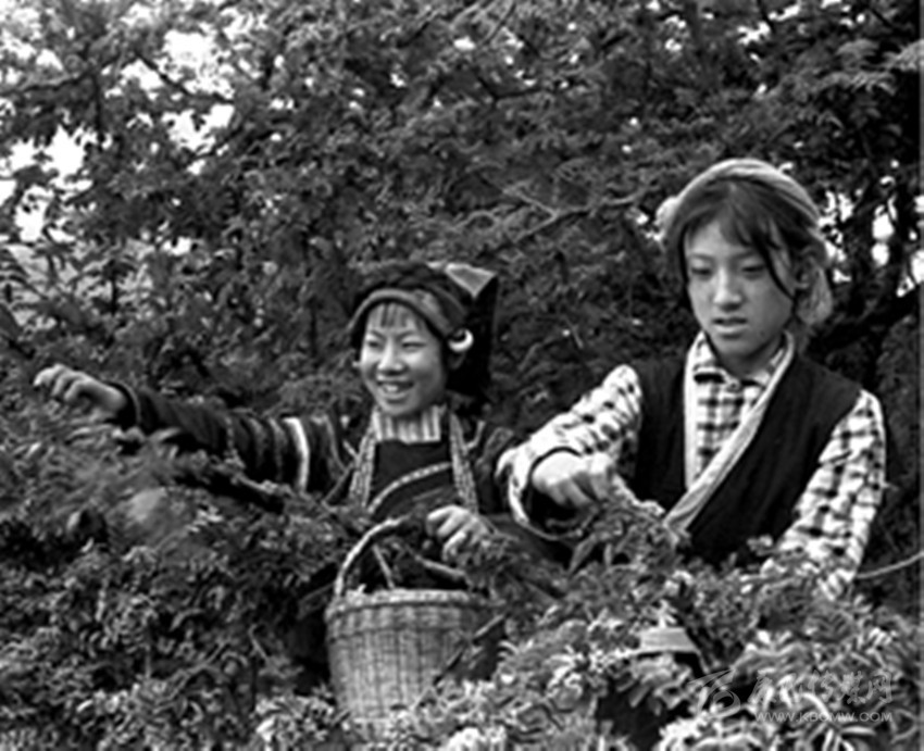 八月花椒紅,黃牛廠藏、彝族社員正在喜摘花椒。