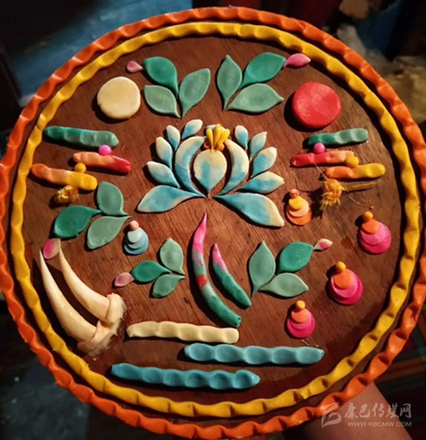 酥油花最早產(chǎn)生于西藏本教,是施食供品上的小小貼花。按傳統(tǒng)的佛教習(xí)俗,供奉佛和菩薩的貢品有六色,即花、涂香、圣水、瓦香、果品和佛燈,可當(dāng)時天寒草枯沒有鮮花,只好用酥油塑花獻佛,由此形成藝術(shù)傳統(tǒng)。