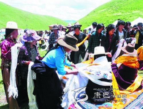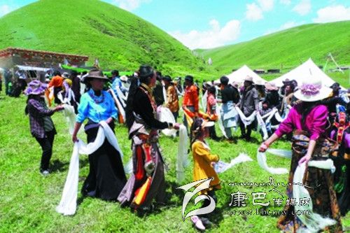 剛走進(jìn)宗塔壩子,記者便意識到一個人想象力的貧乏,現(xiàn)實中的宗塔草原以一種與眾不同的美把一個人的目光悄悄托起。四周長滿牧草的小山像溫順的花瓣,靜靜包裹著那一片平坦的壩子,如果一個人眺望的目光足夠高足夠遠(yuǎn),山和壩子的造型會讓人聯(lián)想到一朵蓮花,而壩子里小點般的帳篷就像一顆顆蓮子,世世代代的宗塔人便在這蓮花般盛開的天地里穿行、繁衍生息。