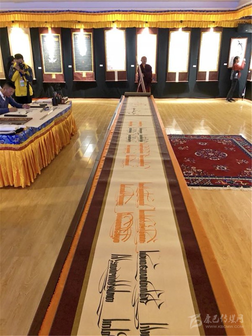 站在“倉央嘉措詩歌藏文書法百米長(zhǎng)卷”面前,來自成都的徐賢前感嘆到:“我一直都很喜歡倉央嘉措的詩歌,但從來沒有想過可以通過書畫的形式來展現(xiàn)倉央嘉措詩歌,雖然我看不懂藏文,但是依然感到震撼,這次我真是不虛此行?。 睋?jù)了解,在詩歌節(jié)期間,理塘縣電子商務(wù)孵化中心書畫文化廳內(nèi)展出由縣級(jí)非遺卓擦?xí)▊鞒腥?、縣級(jí)非遺噶瑪嘎孜派唐卡傳承人、縣書法協(xié)會(huì)成員等集合而成的近60幅藏漢書畫作品。其中,首次對(duì)外展出的“倉央嘉措詩歌藏文書法百米長(zhǎng)卷”引來了眾多參觀者的圍觀。