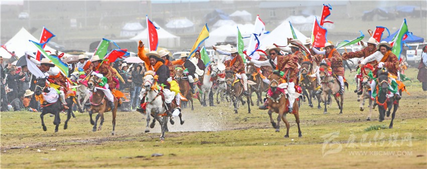 “神駿飛蹄沖云霄,箭過耳畔風(fēng)蕭蕭。眨眼已達(dá)終點(diǎn)線,歡呼聲起似驚濤?!薄@是今年理塘賽馬會(huì)現(xiàn)場(chǎng)最貼切的寫照。8月3日上午,在“馬術(shù)之鄉(xiāng)”的理塘縣八一賽馬場(chǎng),禮炮聲響還未散盡,來自曲登鄉(xiāng)、高城鎮(zhèn)、格木鄉(xiāng)、奔戈鄉(xiāng)、禾尼鄉(xiāng)及村戈鄉(xiāng)共計(jì)1000名草原騎手齊登場(chǎng),他們忽而馬背倒立,忽而藏身馬肚,忽而俯身拾哈達(dá),忽而飛槍射擊,繪出一幅壯闊人心的畫面。
