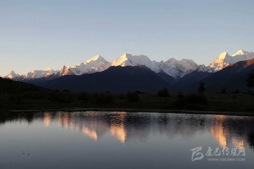 我和張柯在村子里轉(zhuǎn)悠了十多分鐘,也沒有見到一個(gè)人。我們只好到田野里瞎轉(zhuǎn)。斜達(dá)村的海拔有3305米,在這里可以俯瞰下面山谷對面的江坡村。因?yàn)楹0胃?,種的都是旱地,地里的青稞才有一尺高。我們從田埂上走過去,一只碩大的母雞帶著10多只小雞唧唧咕咕的在田地里覓食。我們走到村邊山頭上,放眼望去,對面的卡瓦格博群山放射著萬道金燦燦的霞光,盡顯山之王者的威儀。下面的山谷里,蘭色的炊煙如帳幔般飄拂,好一副山野美景!