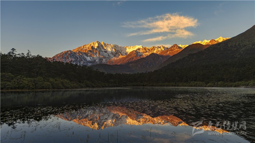 窗外,飄散的雨珠無邊無際地紛飛,抬頭仰望深邃的夜空,不禁思想起飛機抵達甘孜的那一刻——舷窗外,云層如棉絮般靜語緩流,遙遠的云端盡頭,陡然出現了一座壁立千仞、直插云霄的巨大錐形山峰,其上覆蓋著潔白冰雪,反射著金色的陽光……