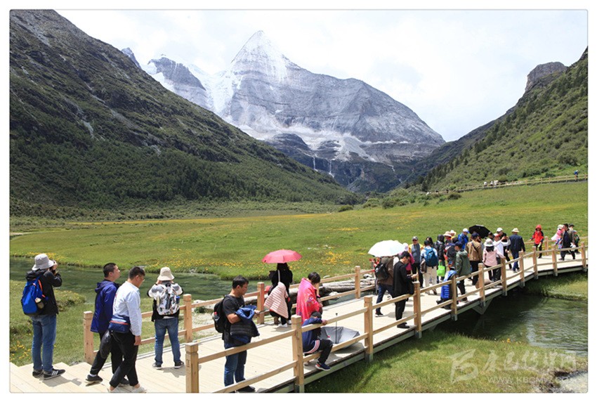 沒(méi)想到從景區(qū)的接駁車(chē)上一下來(lái),第一眼看到的雪山就是仙乃日神山,而且,就在我們進(jìn)入核心景區(qū)方向的右手邊上,一種近在咫尺的即視感!于是,人可是要有多激動(dòng)就有多激動(dòng)了。