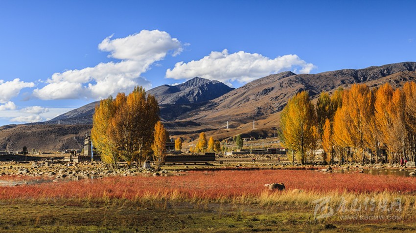 生活的美好在萬畝格桑花海里、在山溝溝里巨大的秋陽灑落我周身的溫暖里、在公路兩旁的蓮花白緊實(shí)的菜心里,美好的日子是公路旁小木臺(tái)上擺滿的橢圓黃色,青黃的蘋果,一袋袋牦牛肉干、筍黃色南瓜里,美好在萬萬棵果樹、白楊樹、柳樹林間。美好是阿媽高原紅的臉蛋兒透出血紅色的笑臉。