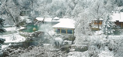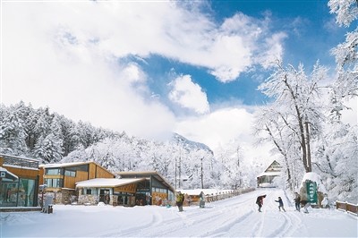 圖為游客在海螺溝冰川溫泉度假村拍攝藝術(shù)照。