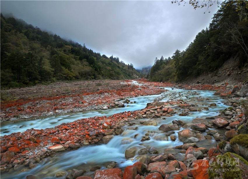 這里的景“色”是不可替代的,據(jù)說紅石移到其他地方之后,就變色了,石頭上面的紅色苔蘚也不復(fù)存在,讓人不得不感嘆海螺溝的神奇與幻妙。