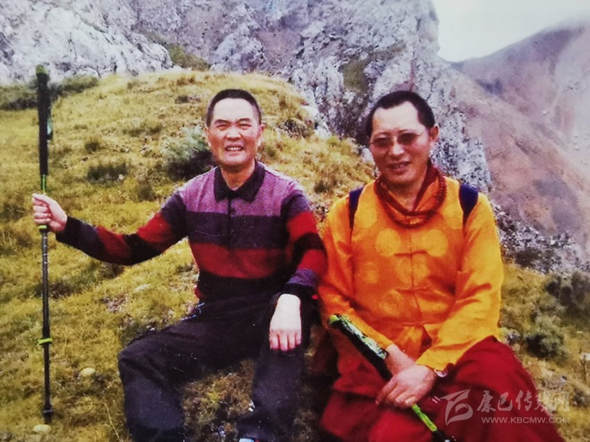 劉安全與達納寺堪布前往格薩爾三十員大將靈塔實地考察。(老照片)