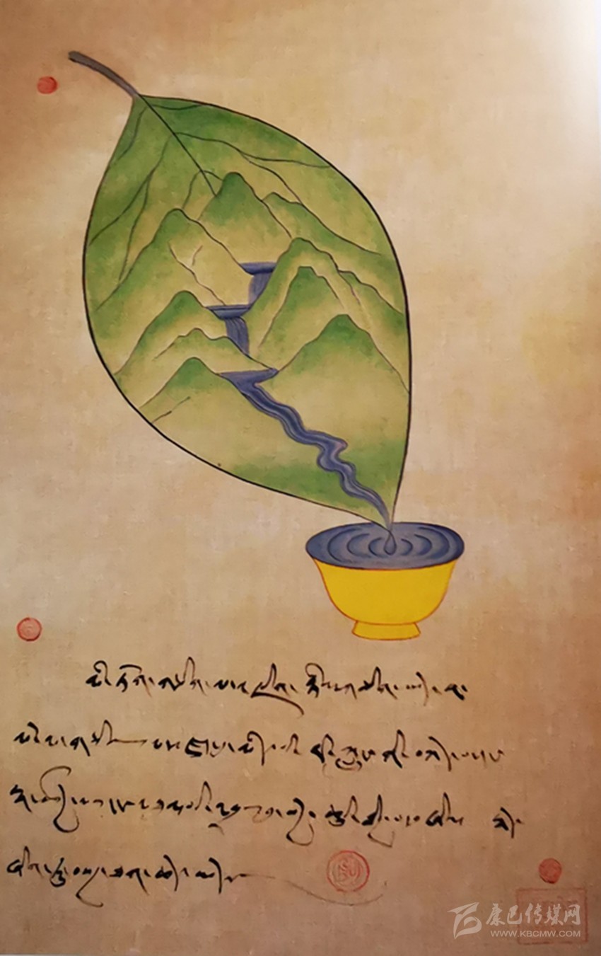 乍一看,儼然一名尋常的鄰家美少女。畫面主體除了度母、一座山和身下的毛毯外,僅于最側(cè)邊寫上藏文、蓋上印章,便無任何需要宗教知識背景來認識畫面的元素,極為通俗簡潔。