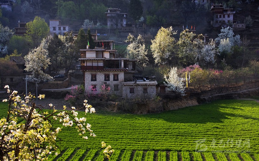 傳統(tǒng)的丹巴民居,一般由鍋莊房、經(jīng)堂、臥室、客廳、儲(chǔ)藏室等組成。此外,樓房部分還含有外廊、陽臺(tái)、挑出的旱廁等,共同組成了功能齊全的房屋。在平面布置上,茶房占據(jù)著整個(gè)空間的重要位置,并以它為中心布局著其它房屋的布局。