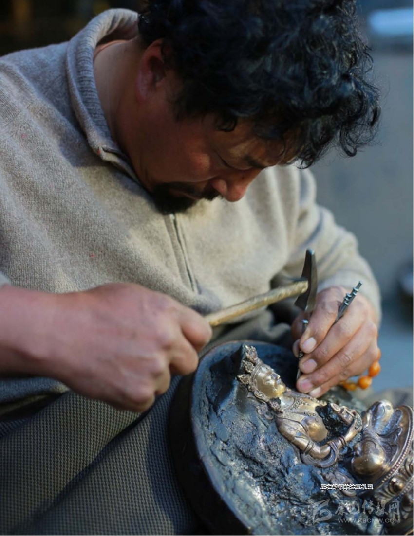 達(dá)瓦扎巴年輕、穩(wěn)重、活力,儼然一副小主人的模樣,用流利的漢語(yǔ)給我們介紹銅鑄技術(shù),也充當(dāng)我們和父親之間的翻譯。我們問(wèn)達(dá)瓦扎巴麥宿銅鑄佛像與其他地區(qū)的最大差別在哪里,他滿是自豪回答:我們的鎏金銅技術(shù),可以說(shuō)是獨(dú)家絕活,也是內(nèi)地近乎失傳的古法工藝。有故事為證:二十多年前,因?yàn)橹挥懈赣H一人會(huì)這門技術(shù),佛像產(chǎn)量很小。一位常年在印度做古董佛像投資生意的麥宿人回到老家,發(fā)現(xiàn)自己輾轉(zhuǎn)收來(lái)的“古董”竟然出自夏雷尼瑪之手。原來(lái)因?yàn)楣に嚬艠憔?,夏雷尼瑪制作的佛像被許多人冒充“古董”轉(zhuǎn)賣,竟然流到了印度。