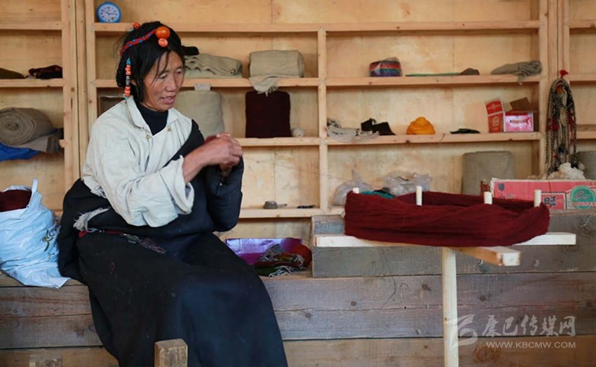 “庫(kù)”,這層細(xì)軟的底絨被表層粗糙的牦牛毛所覆蓋,且本身細(xì)長(zhǎng)彎曲,無(wú)法用剪刀方便地剪下,故而只能手工采集。從每年春天采集牦牛、羊絨,到捻成線,到染成不同顏色,再到織成一匹布,整個(gè)過(guò)程全由扎西巴姆和她帶領(lǐng)的幾個(gè)藏族婦女手工完成,全部學(xué)會(huì)這門技術(shù)需要3—4年,現(xiàn)在麥宿只有4人全部掌握。但與這費(fèi)力耗時(shí)的工藝形成殘酷對(duì)照的是,手工織物在機(jī)器快速生產(chǎn)的現(xiàn)代社會(huì),市場(chǎng)經(jīng)營(yíng)可謂舉步維艱。雖然工巧明系創(chuàng)立的平臺(tái)專門收購(gòu)編織班做出來(lái)的產(chǎn)品,但購(gòu)買的人并不多,編織班創(chuàng)建至今,所得收益只夠勉強(qiáng)維持平衡。