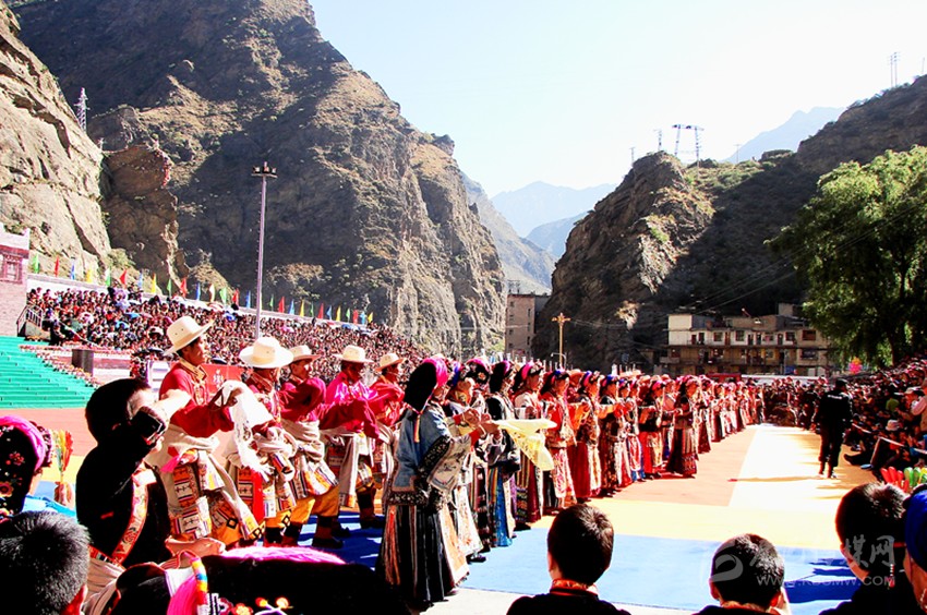 行不多時(shí),一座美麗的村寨就出現(xiàn)在面前。眼前,一幢幢白色的藏房就散落在這如如世外桃源般的山坳里,它就是有著歌舞之鄉(xiāng)美譽(yù)的宅龍村寨。山寨中央,一條小徑將整個(gè)村寨一分為二,小徑以上的村寨為上宅龍,小徑以下的為下宅龍。因?yàn)檫@里曾是守備千總的衙門駐地,因此,與周邊使用嘉絨藏語(yǔ)的村寨比較,這里的人們習(xí)慣使用嘉絨藏語(yǔ)中的敬語(yǔ)交流,其語(yǔ)調(diào)柔和,語(yǔ)速較緩。這里的鍋莊舞獨(dú)樹(shù)一幟,服飾更是一絕。