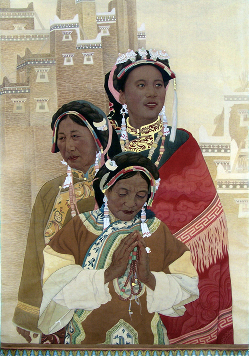 “2000年以后,甘孜州的畫家出現(xiàn)了斷層,創(chuàng)作進(jìn)入了低迷期,我想更進(jìn)一步提升自己的繪畫功底。”金澤花說,2005年,經(jīng)過一年的緊張備考,次年她如愿以償考上了中國的最高美術(shù)殿堂——中央美術(shù)學(xué)院?!霸谥醒朊涝旱膬赡辏佬g(shù)老師不斷給我們加課,我連天安門都沒有去過,遺憾的是我沒有英語等級,只拿到了學(xué)歷證書?!?/span>