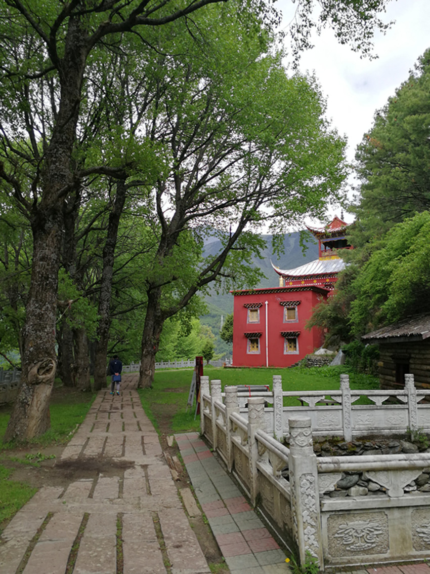 中國民俗有“大年初一不竄門”,這一天,康定人很多都會去寺廟燒香敬佛。前年大年初一,我便去了觀音閣。進門處,有專供燒紙錢的地方。再上階梯,有長列的白色佛塔,進寺就可點燈朝拜。出了觀音閣,我順道去找獅子巖。公路一側的堡坎已將原來的小徑斬斷,翻上堡坎,小徑幾乎已沒了蹤跡。再仰頭望,獅子巖已是掩映在濃密的綠樹雜叢間。長在右側的花椒樹,已不見蹤影。幾株高大的白楊樹遮天蔽日,最大的都長到盆口粗了。“百年樹木”,這無疑還是當年那幾棵白楊樹了。我艱難地鉆過荒叢爬到獅子巖腳下,那“祭祀臺”上如過去一樣擺放有貢品,旁邊和樹枝上掛有經(jīng)幡,但周圍仍沒有一絲煙熏火燎過的痕跡。