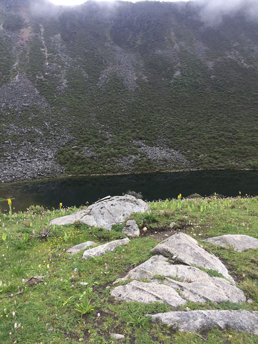銀珠聽(tīng)到南吉即興唱出的山歌那么溫婉動(dòng)人,被風(fēng)吹冷的眼睛里落下了兩顆溫?zé)岬臏I水。她掩飾住自己的情緒,從粗重的呼吸里回答:“好??!”南吉聽(tīng)到銀珠對(duì)唱,臉上綻放出笑容。她們的腳底不再發(fā)出響聲的時(shí)候,就是已經(jīng)走到了兩座大山之間的那片山谷。一層淺雪里露著青草、一叢叢開(kāi)紫花的小杜鵑,還有密密匝匝的矮腳柳。銀珠站在一塊土包上,她打開(kāi)雙臂,一臉明媚地對(duì)著南吉說(shuō):“阿姐,這片沒(méi)有積雪的山谷就是我送給你的禮物。”