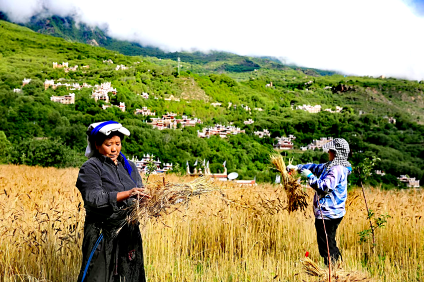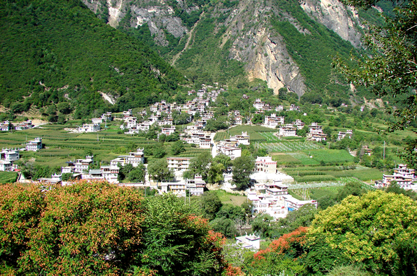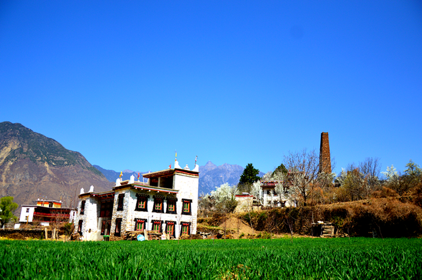 緊挨著草坪,是寨子里人們賴以生存的梯田。由于這里海拔較高的緣故,因此,只出產一些適應在高原生長的胡豆、豌豆和青稞等農作物。有時候,趁我們在水中嬉戲打鬧的時候,那些牛羊偷偷地跳進莊稼地里。遠處傳來“伊拉哇啦”的叫喊聲,我們連忙從水中爬出來,迅速地穿上衣物,向著莊稼地跑去。在田地旁,一位白發(fā)蒼蒼的老阿婆揮舞著雙手,一邊驅趕著地里的牛羊,一邊向我們大喊大叫。只是,這位阿婆由于天生不會說話,只會發(fā)出“伊拉哇啦”的聲響。為此,我們是不怕她的,占據有利的地勢,學著她的樣子。老人非常的氣憤,邁動著不甚靈活的腳步向我們走來。然而由于年老體衰,在我們這一群行動敏捷的小孩面前,只好作罷。每每此時,我們用藏語一起喊道“啞巴啞巴,能耐我何”。如今回想起來,確實不該,只是作為小孩,也只能自嘲小孩無罪了。