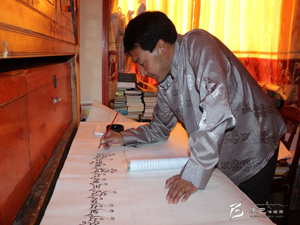 他就是巴松鄧珠,甘孜縣民族中學(xué)高級(jí)教師,從事藏文和藏文書法教學(xué)?,F(xiàn)為州老年書法家協(xié)會(huì)會(huì)員、州書法家協(xié)會(huì)會(huì)員和州藏文書法協(xié)會(huì)會(huì)員。