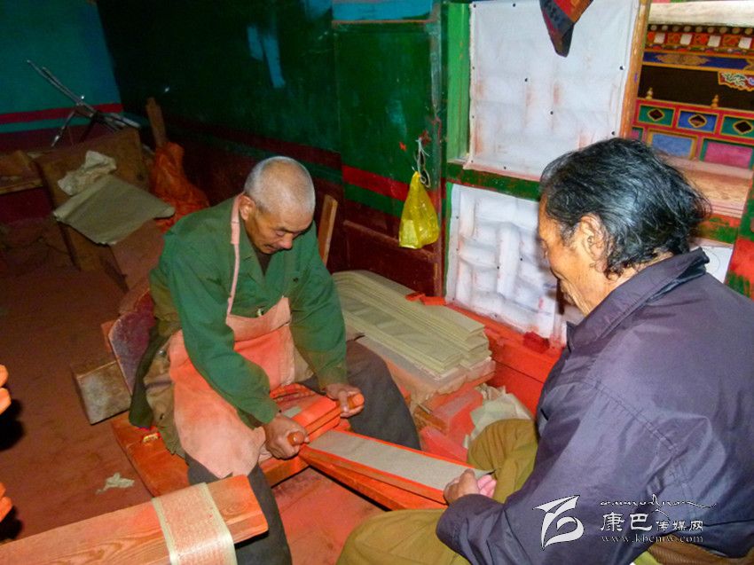 幾大教派寺院的建立,為德格家收羅各種佛教經典提供了更方便、更寬闊的途徑。德格巴宮是第六代法王登巴澤仁在52歲時動工興建的。他高薪聘請了精于藏文書法的教師,用藏文書法家穹波雨赤、絨波娃所著的書法標準四十條來教授書法,擇優(yōu)選擇了65人從事模板書寫,400人從事雕刻,然后多次校對再定版。經過5年認真細致的工作,印制完成了《甘珠爾》經典103三部,《丹珠爾》23部,《薩迦文集》10部,其他經典200多部。