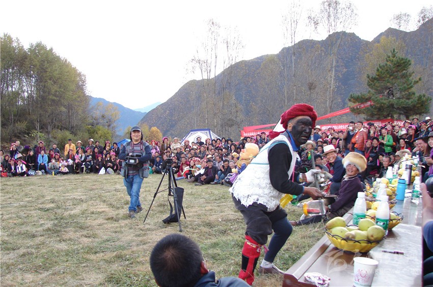 其實(shí),對(duì)于這種畫臉的劇種,我以為,它最初應(yīng)該來(lái)源于地頭文化,古時(shí)候的嘉絨農(nóng)村,文化生活異常貧乏,在歷史的長(zhǎng)河中,原住民主要依靠放牧及種地為生,在一起勞作時(shí),男人和女人之間常常會(huì)開一些的玩笑,一般無(wú)所避諱。