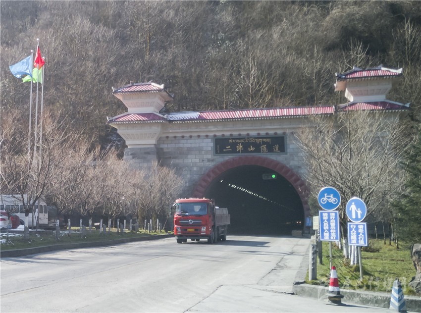 1995年10月18日,二郎山隧道東坡引道工程的開工,標志著人們的期盼在實現(xiàn)的道路上邁出了第一步,拉開了二郎山隧道建設(shè)的大幕。經(jīng)過4年時間的緊張施工,在二十世紀的最后一個月里,這條全長4180米,寄載著藏、漢各族人民深切期望的隧道勝利通車了。一早從康定乘車出發(fā),下午就已經(jīng)漫步在成都街頭,大有隔世之感?;叵朊恳淮螐目刀ǖ匠啥迹羁煲惨獌商鞎r間,如果遇到二郎山堵車,那就不是一天、兩天可言了。有一次,二郎山上一輛大貨車拋錨,公路剛好一輛車寬,堵在它身后的數(shù)百輛車就在山上陪了它3天。直到這輛車修好,大家才一同下山。這還不算什么,有時遇上塌方,在山上堵上6天、7天,也是家常便飯。