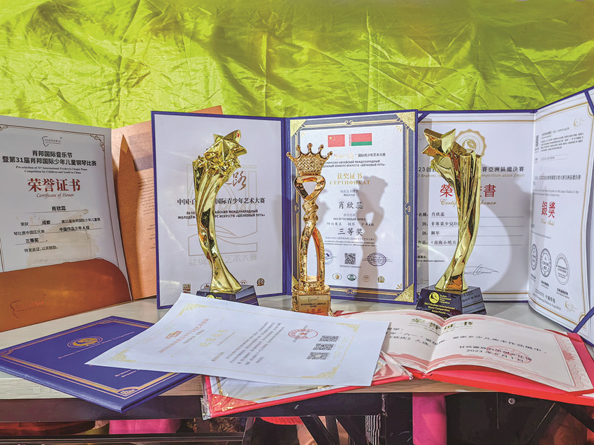第一次比賽,取得不菲的成績,肖欣蕊有了自信。2023年6月,她又參加了中俄絲綢之路音樂大賽鋼琴比賽,拿到了二等獎,成功晉級總決賽,不過,由于時間關(guān)系沒有參加總決賽。